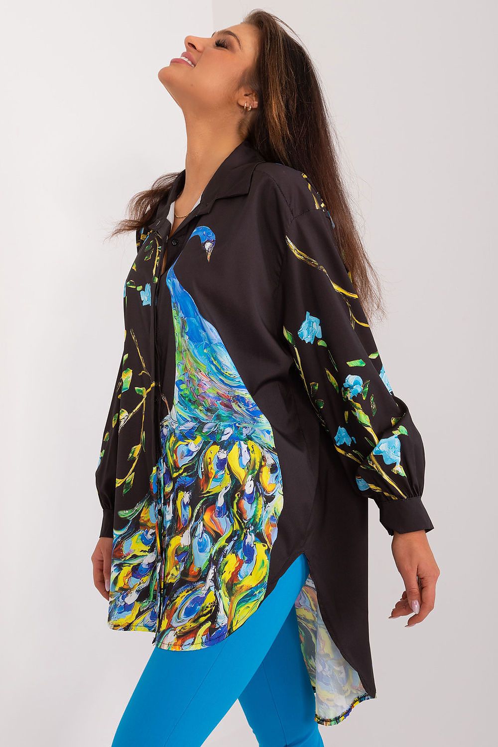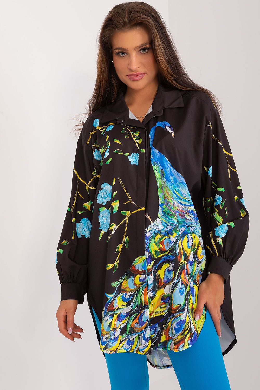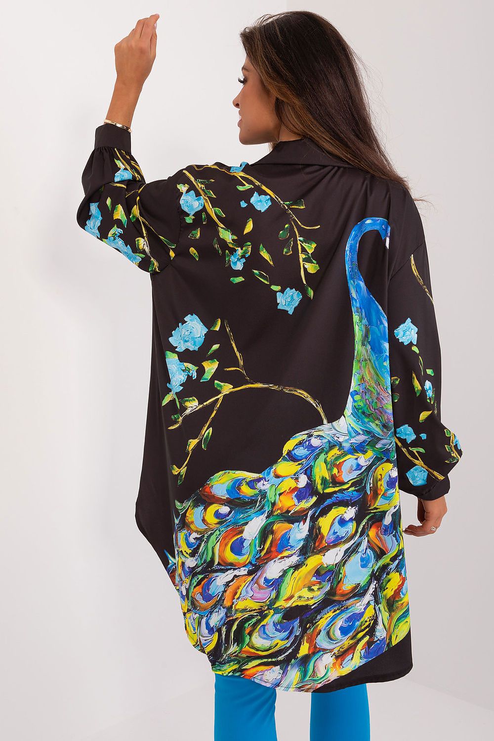 This women's shirt combines a casual style with a unique design, ideal for everyday outings and informal events. Its colorful peacock print gives it character and originality, creating a striking and original style. Made of high-quality polyester, this shirt guarantees a comfortable fit and great durability. Its long sleeves and length make it an ideal choice for colder days, providing comfort and protection from the cold. The collar and covered button placket add elegance and class to the shirt, emphasizing its versatility and timelessness. The puffed sleeve adds a touch of lightness and delicacy, creating a striking contrast with the colorful print. This women's shirt is the perfect choice for women who want to express their individuality and originality in their everyday wardrobe. Its unique design will make you feel special and confident in any situation.