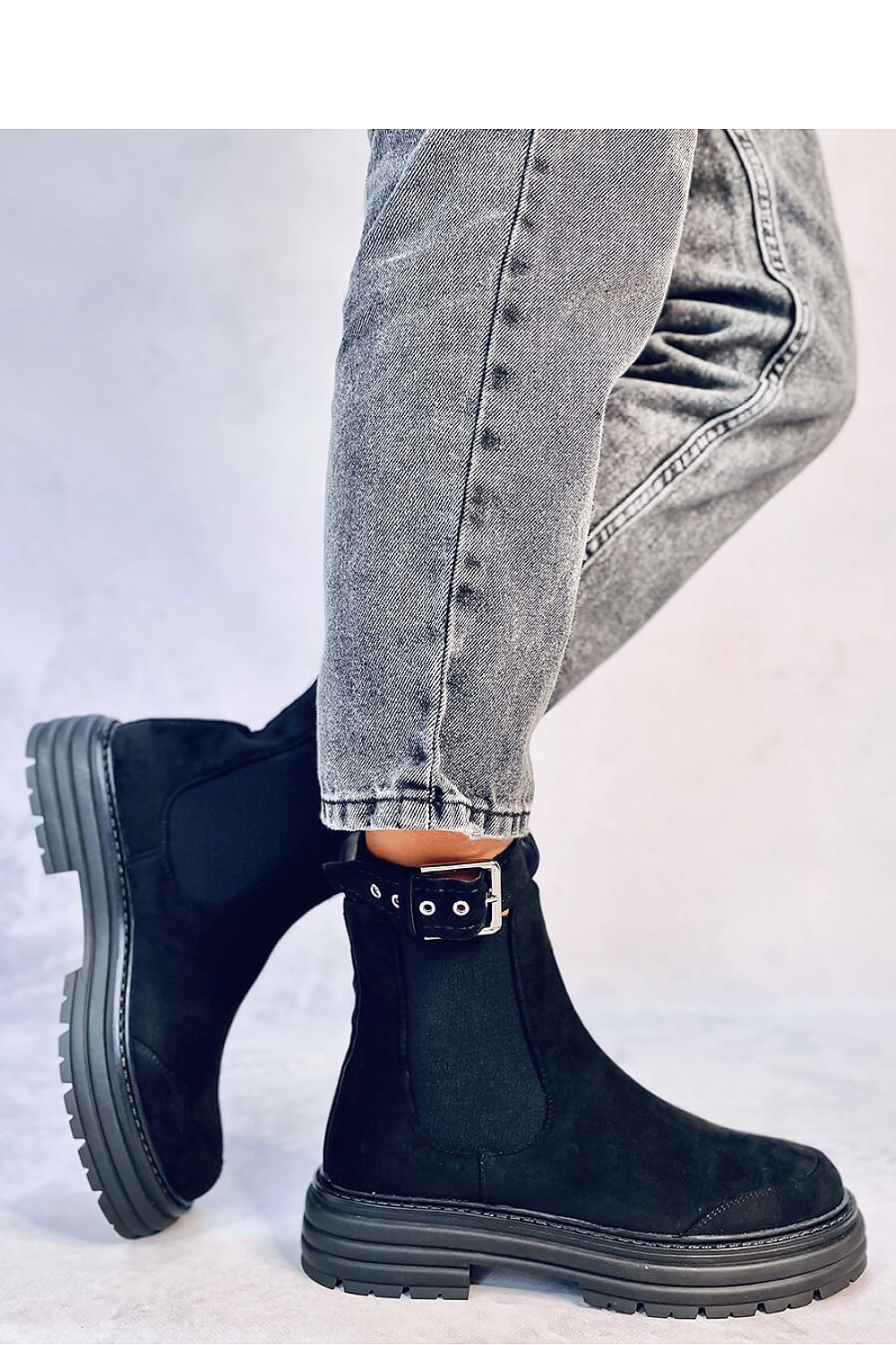 Women's suede boots - pumps with a thick sole. A belt with a buckle (removable) diversifies the design of this model. If you're ready for a little madness, order them today : ) The boots have rubber inserts that ensure comfortable putting on. The inside of the boots is lined with soft fur. Outer material - eco-friendly suede.