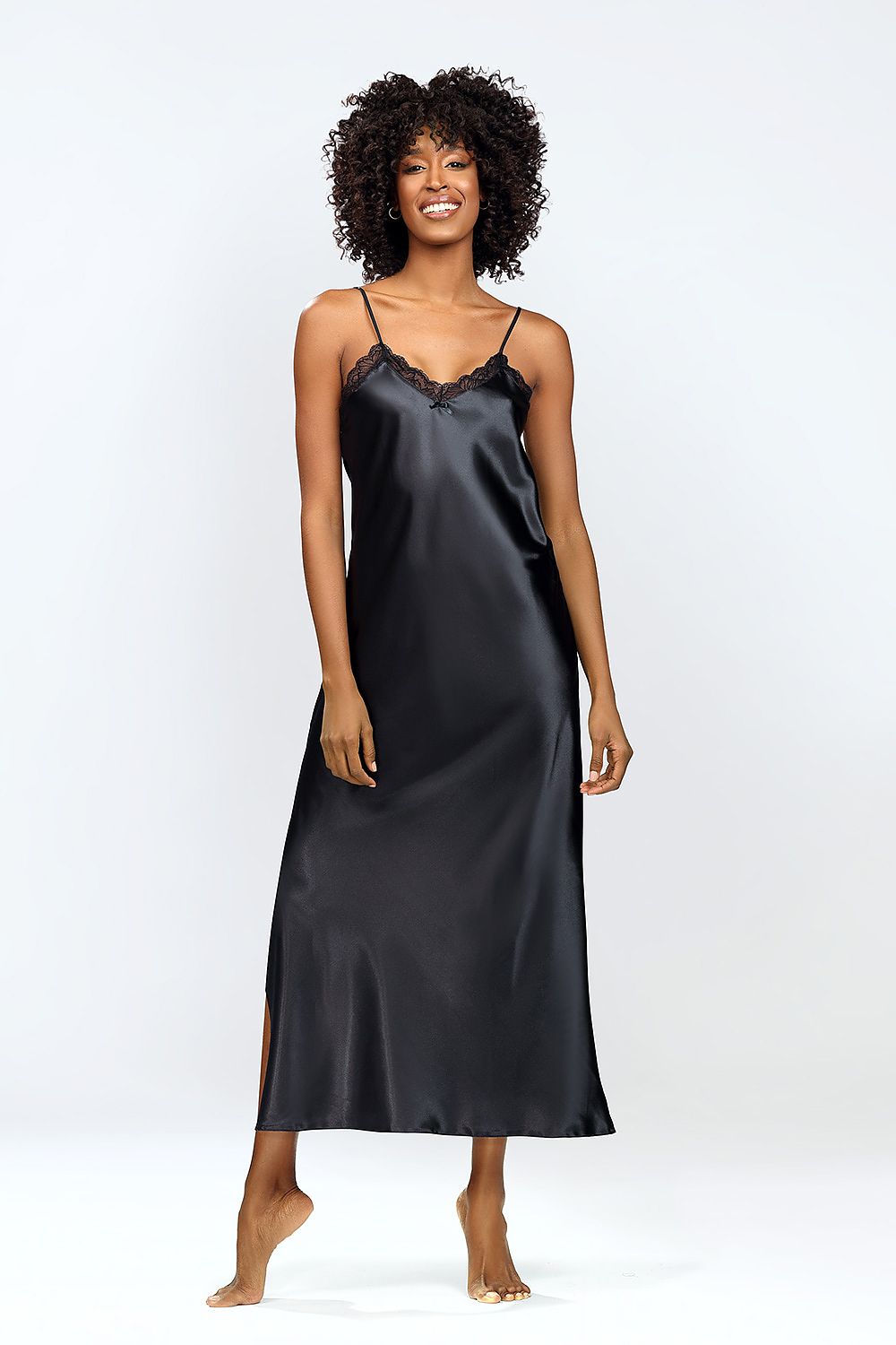 The Abeni nightie is both classic and elegant. The long satin nightie is adorned with subtle lace for a touch of sensuality. The dressing gown features two deep side cutouts. Its classic cut allows all women to feel elegant and comfortable.
