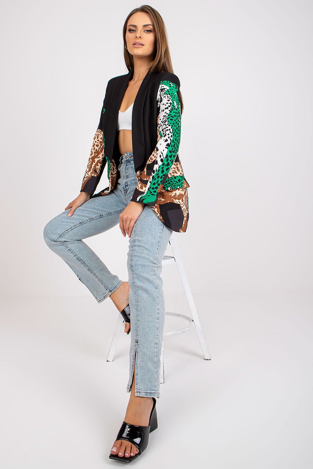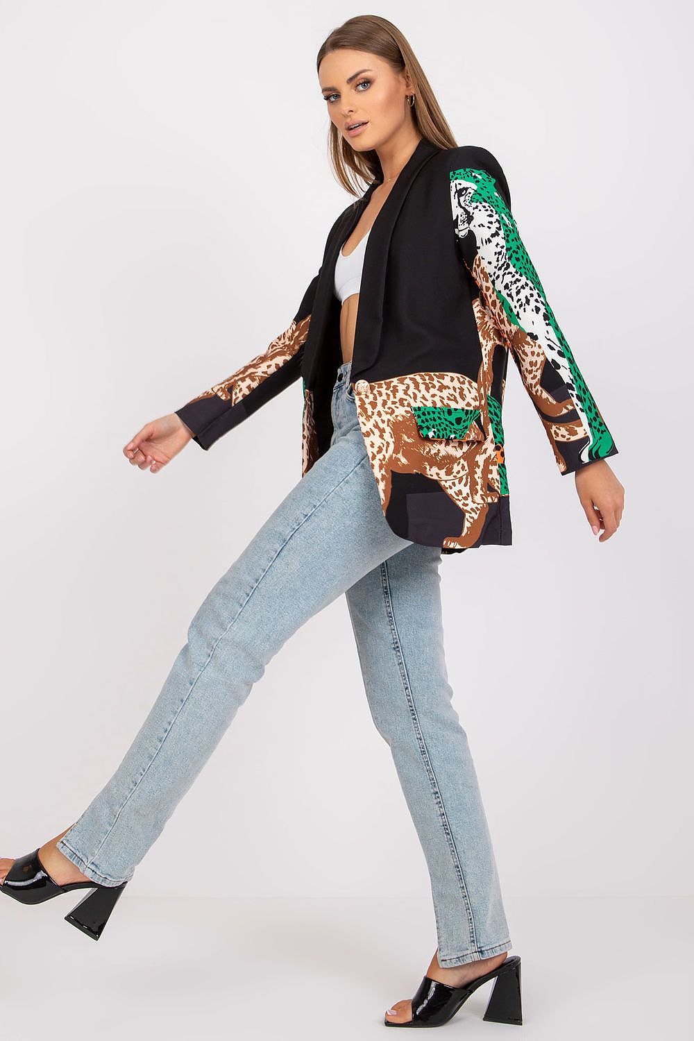 Women's long-sleeved jacket with a button closure. Lined jacket with mock pockets. Sewn-on shoulder pads. Perfect for many occasions.