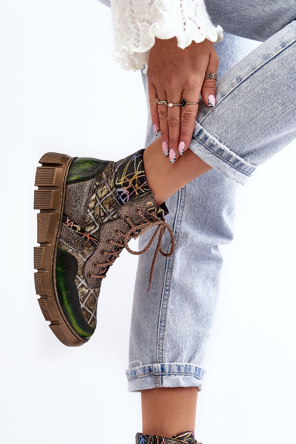 Bottes pour femmes en cuir naturel de haute qualité. Dessus de la cheville avec un motif à la mode. Laçage sur le devant. Bout arrondi. Talon renforcé. Ce modèle se ferme à l'aide d'une fermeture éclair. Semelle intérieure souple pour une utilisation confortable de la chaussure. N'oubliez pas de consulter nos autres modèles Maciejka !