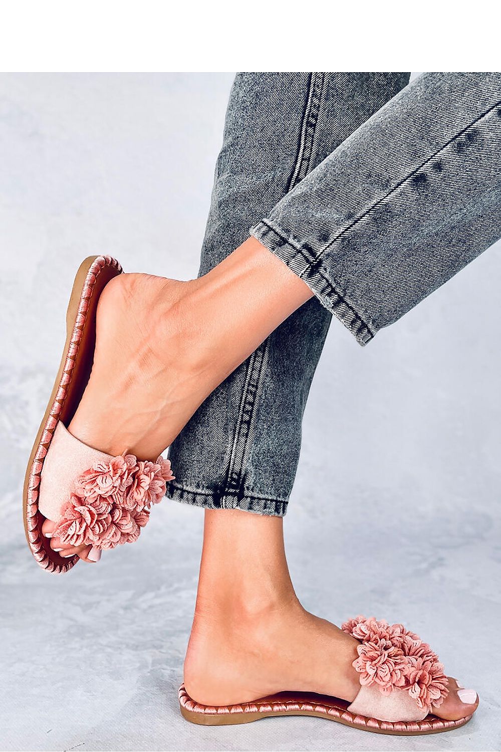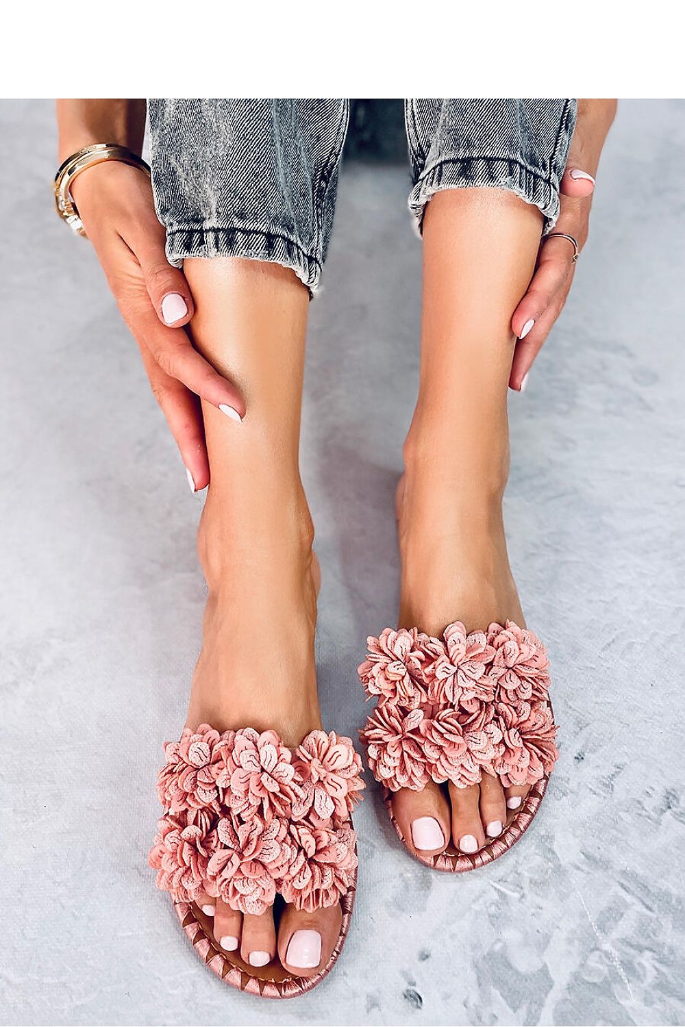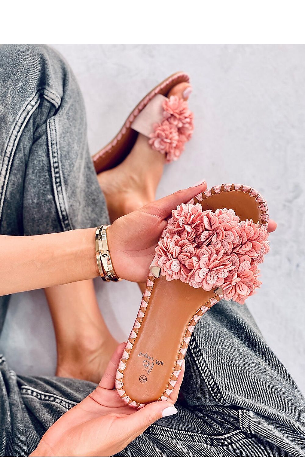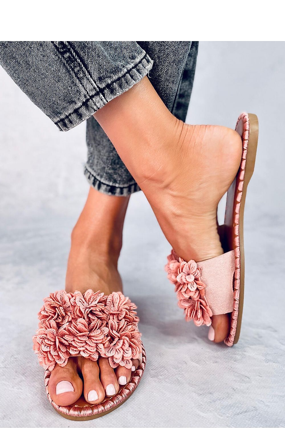 Tongs pour femmes sur une semelle plate. Grâce au charmant appliqué floral, elles feront craquer tout le monde et donneront à vos looks d'été un caractère unique. Vous pouvez tout simplement tomber amoureuse d'elles : ) Matière extérieure ? daim écologique.