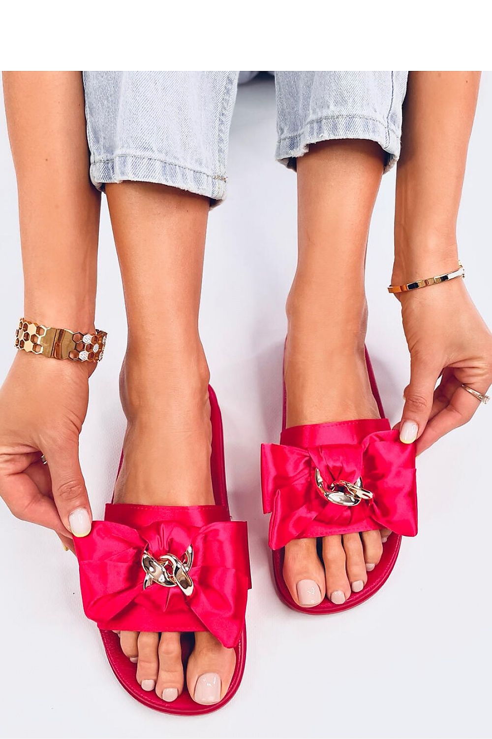 Tongs pour femmes sur une semelle en caoutchouc. Le modèle se distingue par un magnifique nœud, rehaussé de l'accessoire le plus à la mode : une chaîne. La semelle intérieure profilée assure le confort à chaque pas : ) Vous vous sentirez à la mode et à l'aise dans ces chaussures - voyez par vous-même ! Matière extérieure ? tissu satiné.