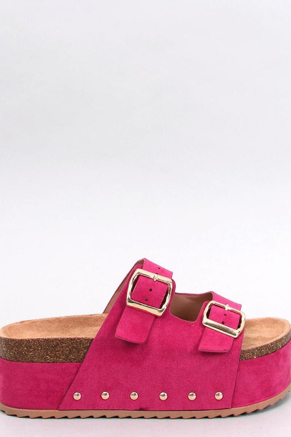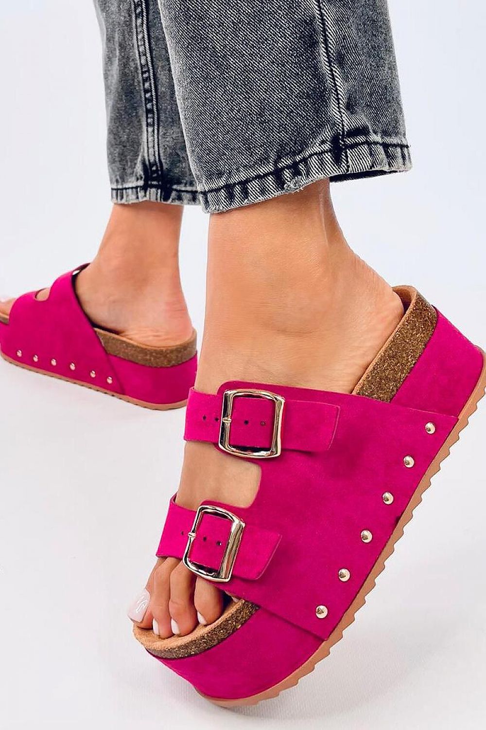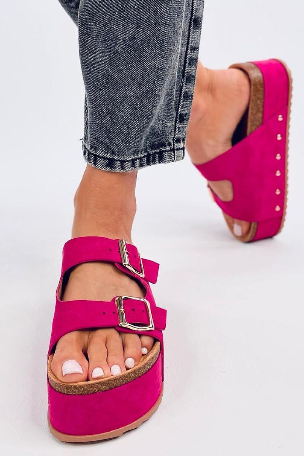 Tongs en liège pour femmes. Si vous suivez les tendances, vous devez avoir ce modèle frappant dans votre collection ! La semelle haute (6 cm) assure la stabilité et la semelle intérieure profilée le confort à chaque pas. Nous vous garantissons que ces chaussures ne laisseront personne indifférent : ) Matière extérieure ? daim écologique (noir, fuchsia, beige) / cuir écologique (doré).