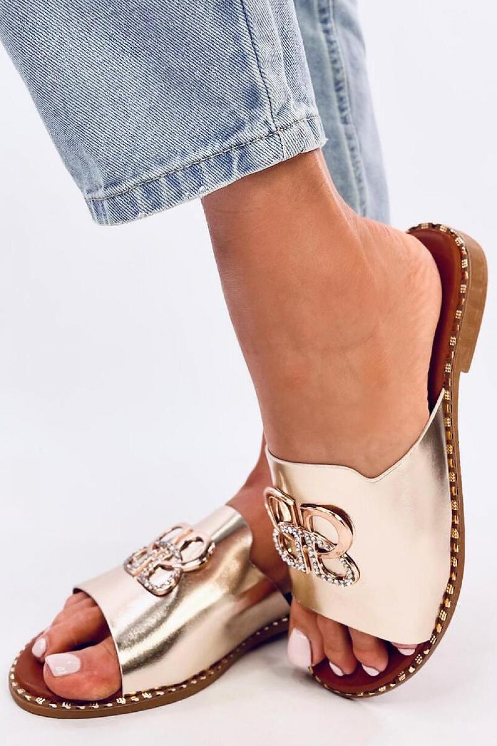 Tongs pour femmes avec strass sur semelle plate. Pour de véritables stars cet été, nous avons un modèle avec une décoration élégante et une bordure spectaculaire. Si vous voulez avoir l'air exceptionnel et profiter du confort à chaque pas, vous devez les avoir : ) Matériau extérieur - cuir écologique.