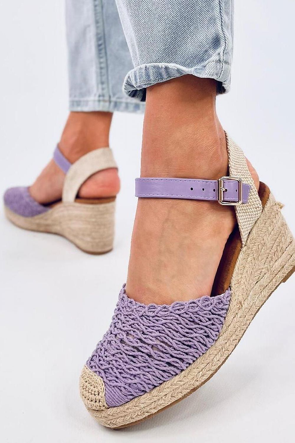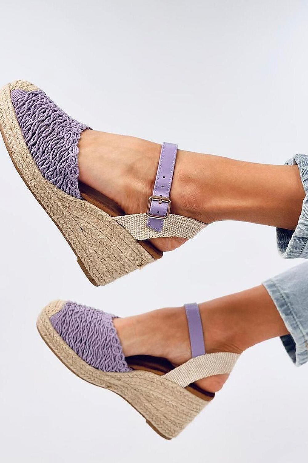 Sandales - espadrilles pour femmes sur une plateforme de 8,5 cm de haut. Ces chaussures uniques sont très délicates et romantiques grâce au tissu tressé qui les recouvre et qui se marie parfaitement avec la finition en lin. Elles s'adapteront à tous les styles d'été : ) Elles sont non seulement très belles, mais aussi très confortables ! Matière extérieure ? tissu.