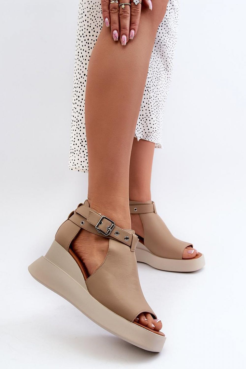 Sandales pour femmes de Jezzi en cuir écologique. Une plateforme et un talon compensé leur confèrent un look moderne et les rendent confortables à porter. Le dessus est décoré de lanières. Ces sandales ne manqueront pas d'attirer l'attention !