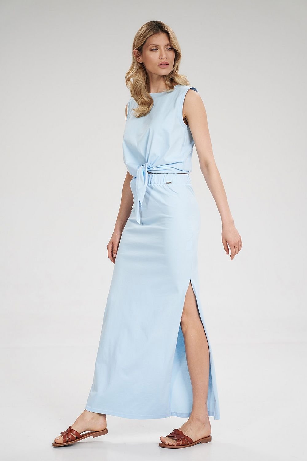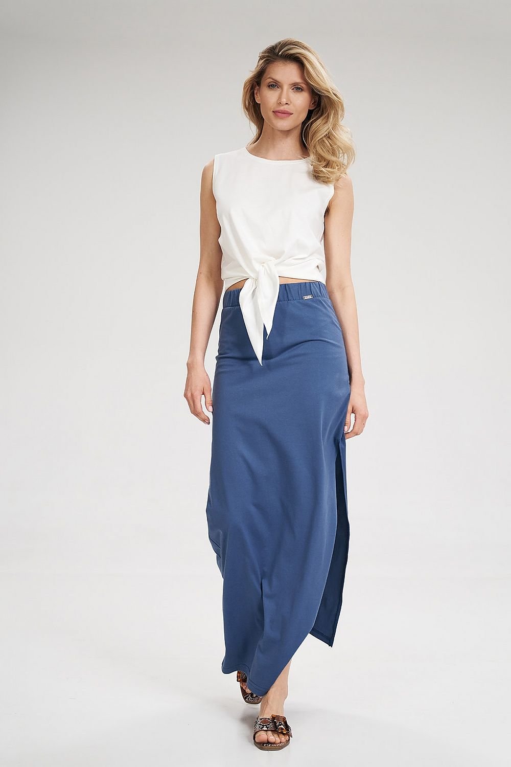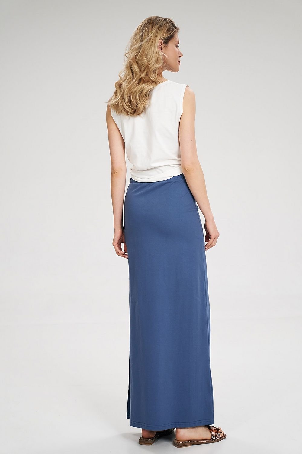 Jupe longue en coton. Large bande élastique à la taille, fente jusqu'au genou sur le côté gauche. Jupe sans poches.