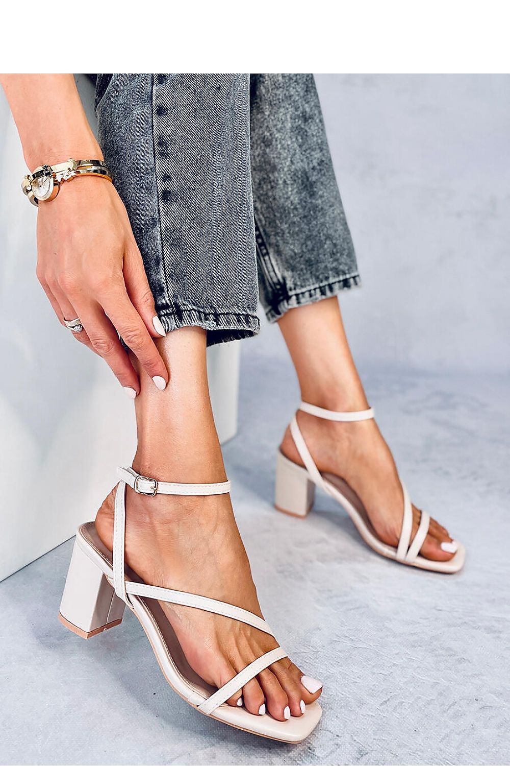 Sandales pour femmes à lacets sur un talon de 7,5 cm. Le modèle se distingue par une coupe classique avec des brides subtiles qui soulignent joliment le pied.... La boucle réglable à la cheville et le talon stable sont les principaux avantages qui feront que vous ne voudrez plus vous en séparer cet été : ) Matière extérieure : cuir écologique.