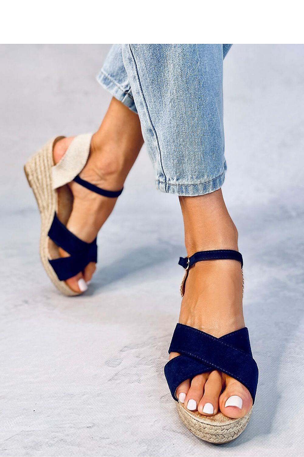 Sandales pour femmes - espadrilles sur une plateforme de 7 cm de haut. La plateforme de 2 cm de hauteur, à la fois tendance et stable, est un avantage inestimable. La semelle intérieure souple assure un confort incroyable à chaque pas - vérifiez-le vous-même : ). N'attendez pas et commandez-les dès aujourd'hui ! Matériau extérieur ? daim écologique + tissu.