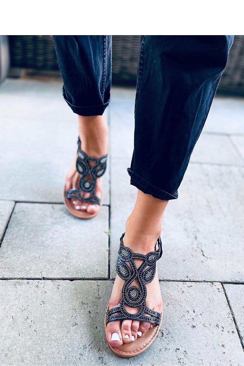 Sandales en dentelle pour femmes. Une belle application de pierres et de perles brillantes crée un motif unique qui ne laissera personne indifférent... Ne manquez pas de les ajouter à votre garde-robe pour créer un style unique et profiter du confort à chaque étape : ) Matériau extérieur - cuir écologique.